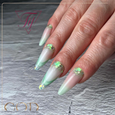 - Correas mezcladas de Bling Laser e Iridescent de manzana verde con reflejos rosados