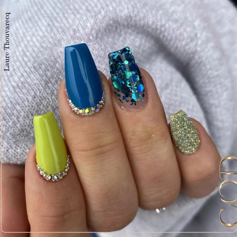 Pour un effet encore plus lumineux, appliquez Glitter Magic Dust Pastel Green sur une base blanche ou nude. Ce contraste fera ressortir toute la pureté et la délicatesse du vert pastel, tout en renforçant la brillance crystal.